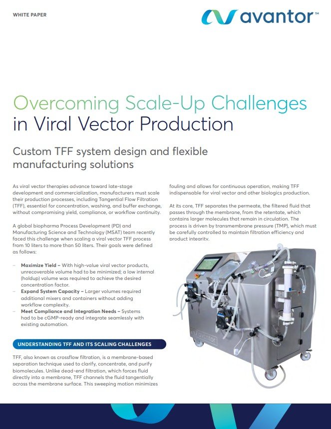 As viral vector therapies advance toward late-stage development and commercialization, manufacturers must scale their production processes, including Tangential Flow Filtration (TFF), essential for concentration, washing, and buffer exchange, without compromising yield, compliance, or workflow continuity.