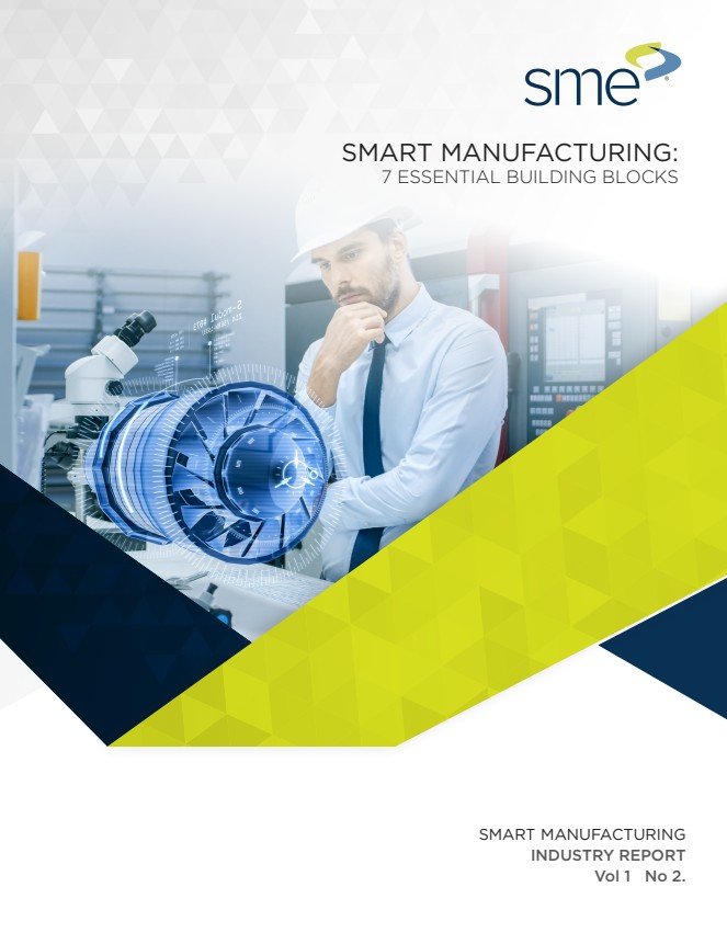 Here, we’ll focus on how to get started defining strategies and implementing solutions by identifying 7 essential critical technology elements (CTE) building blocks. The important topic of finding and training skilled workers is the subject of SME’s third and final Smart Manufacturing Report coming later this year.